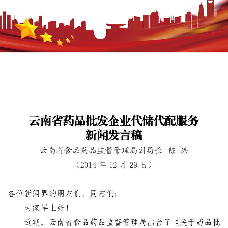 工圖網(wǎng)提供云南省藥品批發(fā)企業(yè)代儲代配服務(wù)新聞發(fā)言稿供會員免費(fèi)下載。更多精彩黨課PPT素材,盡在工圖網(wǎng)。