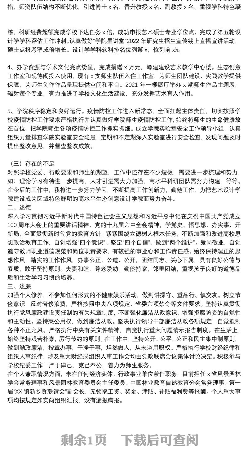 學院院長、黨委副書記2021年度述職述德述廉述法報告 Array