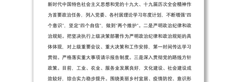 2篇鄉(xiāng)鎮(zhèn)黨委政治生態(tài)分析研判報告范文2篇自查自糾工作匯報總結(jié)