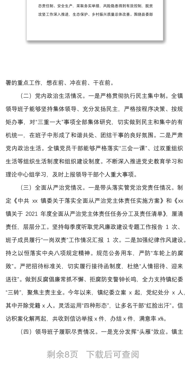 2篇鄉(xiāng)鎮(zhèn)黨委政治生態(tài)分析研判報告范文2篇自查自糾工作匯報總結(jié) Array
