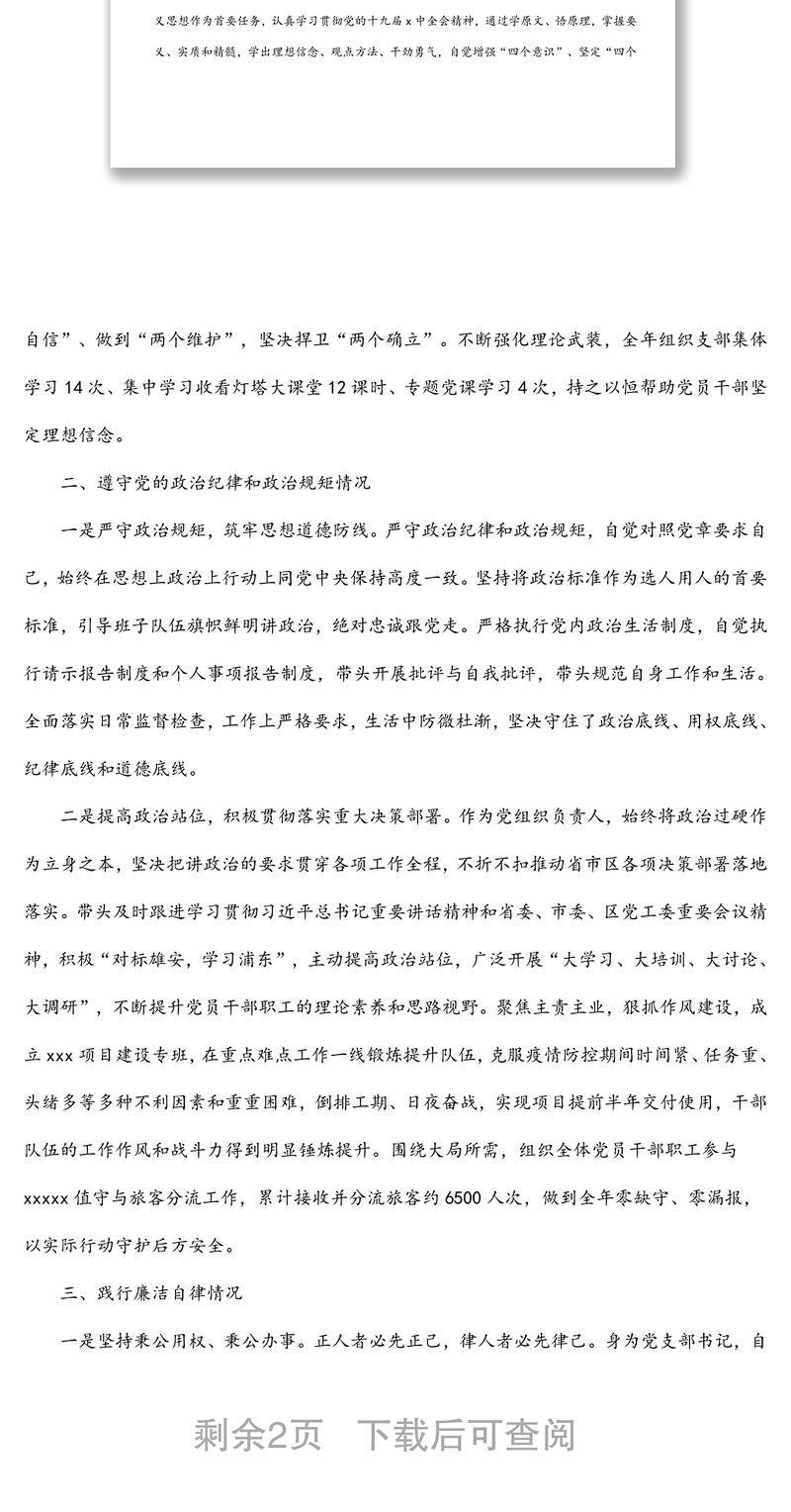 首頁 > WORD文檔 > 報告 > 公司黨支部書記履行全面從嚴治黨主體責任和廉潔自律情況報告.DOCX 【圖片、文字、動畫均可編輯】