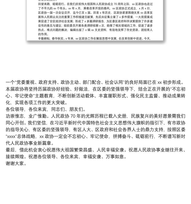 政協(xié)主席在中國人民政治協(xié)商會議xx縣委員會常務委員會工作報告包含