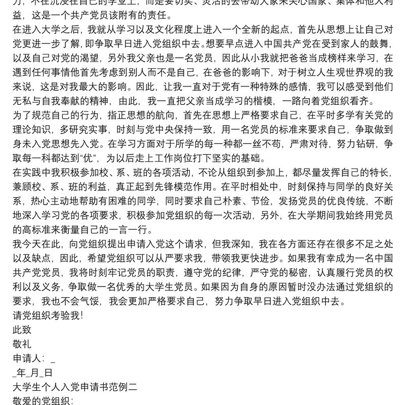 大學生個人入黨申請書范例4篇