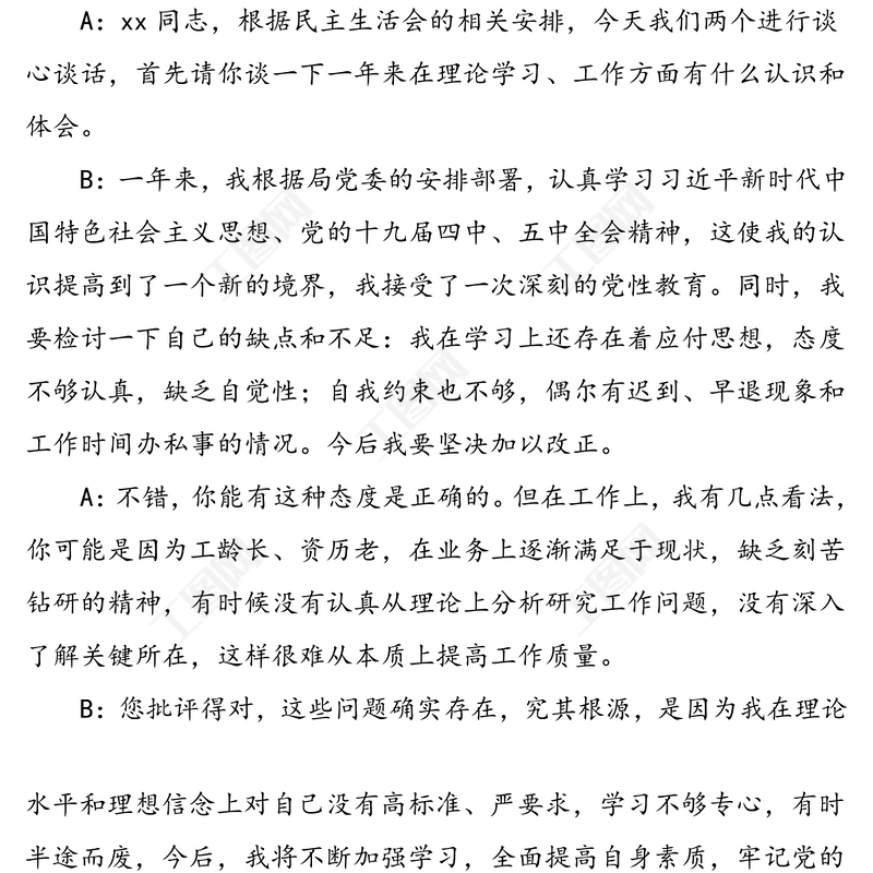2篇談心談話記錄民主生活會組織生活會黨員談心談話記錄范文,談心談話,公文 Array