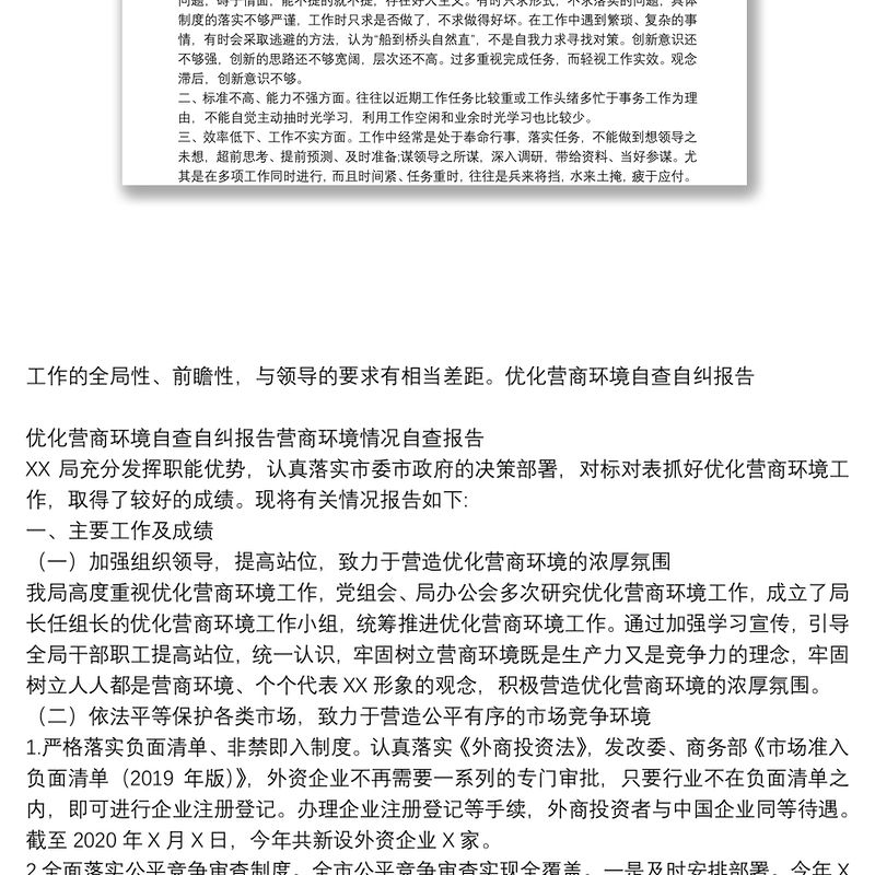 優(yōu)化營商環(huán)境自查自糾報(bào)告營商環(huán)境情況自查報(bào)告 Array