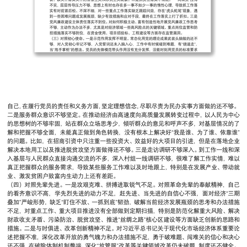 黨員干部學習“不忘初心,牢記使命”主題教育專題組織生活會對照發言包含