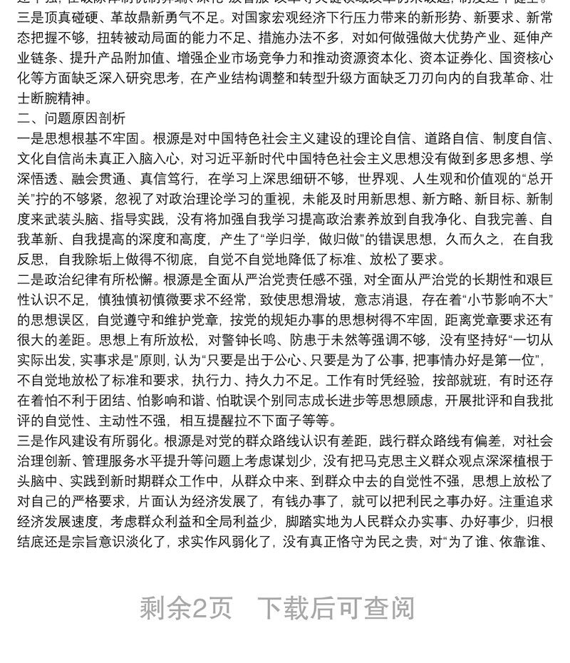 在國有企業專題民主生活會(組織生活會)上的發言包含