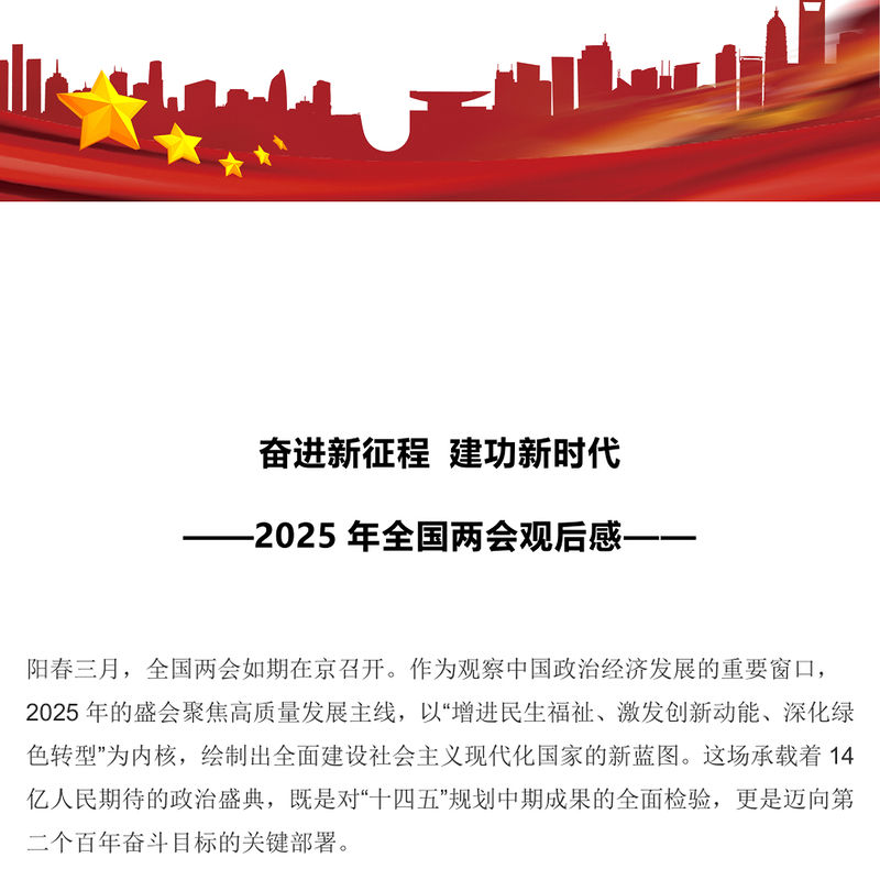 工圖網(wǎng)提供奮進新征程建功新時代2025年全國兩會觀后感供會員免費下載。更多精彩黨課PPT素材,盡在工圖網(wǎng)。