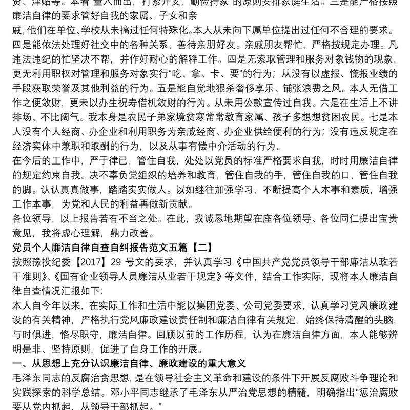 黨員個(gè)人廉潔自律自查自糾報(bào)告范文五篇