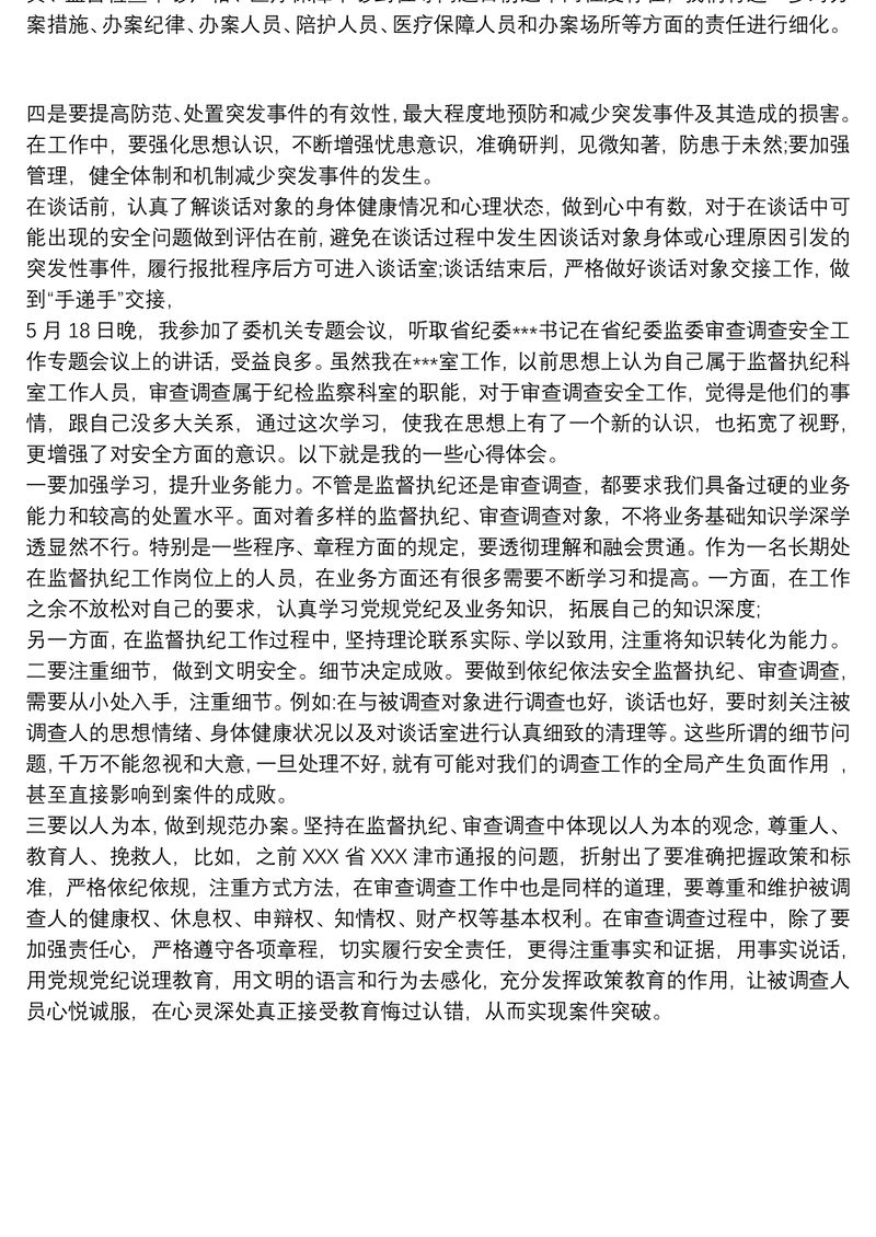 心得體會 > 2021審查調查安全工作的心得體會最新.DOCX