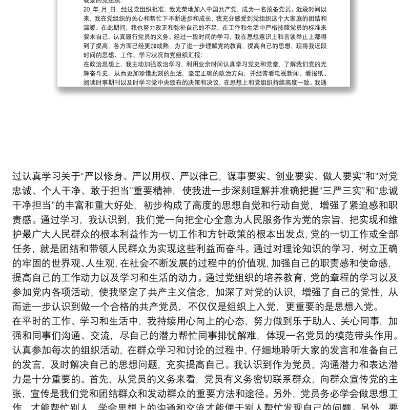 黨員個人預(yù)備黨員思想?yún)R報參考范文