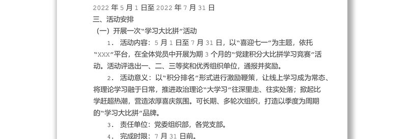 2022年七一建黨節活動方案,2022年七一建黨節活動方案 Array