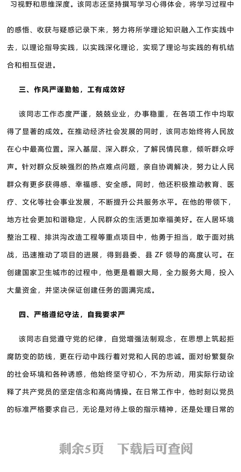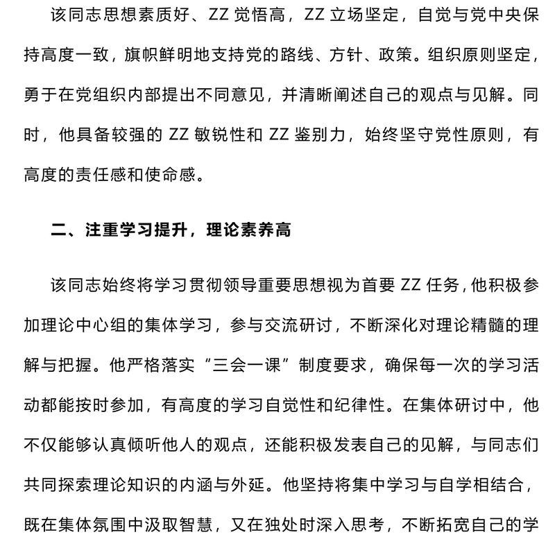 擬提拔中層干部個人現實表現材料包含