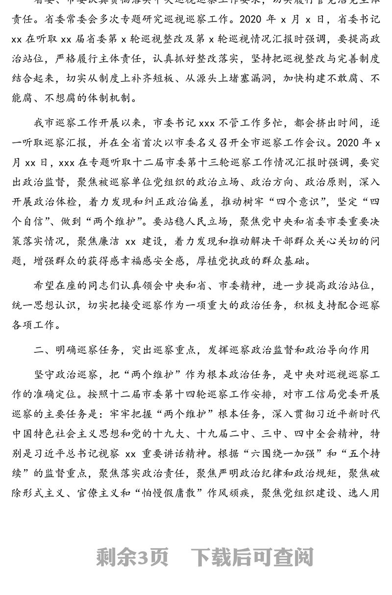 巡察組組長(zhǎng)在巡察市xx局黨委工作動(dòng)員會(huì)上的講話,動(dòng)員會(huì),公文范例,領(lǐng)導(dǎo)述職報(bào)告,機(jī)關(guān)公文寫作 Array