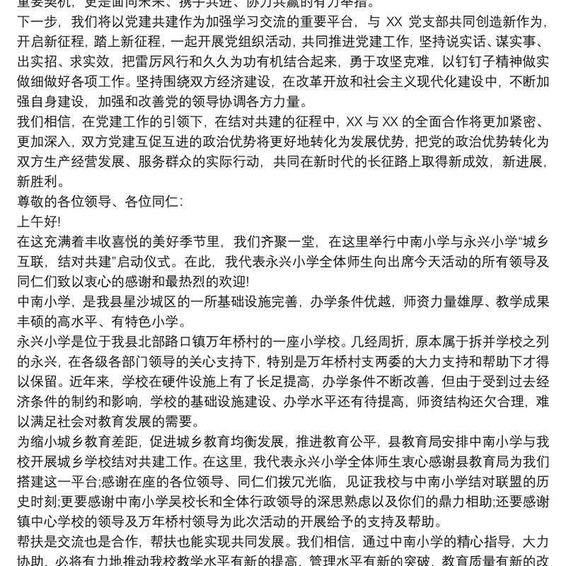 2021黨建結對共建活動領導講話稿包含