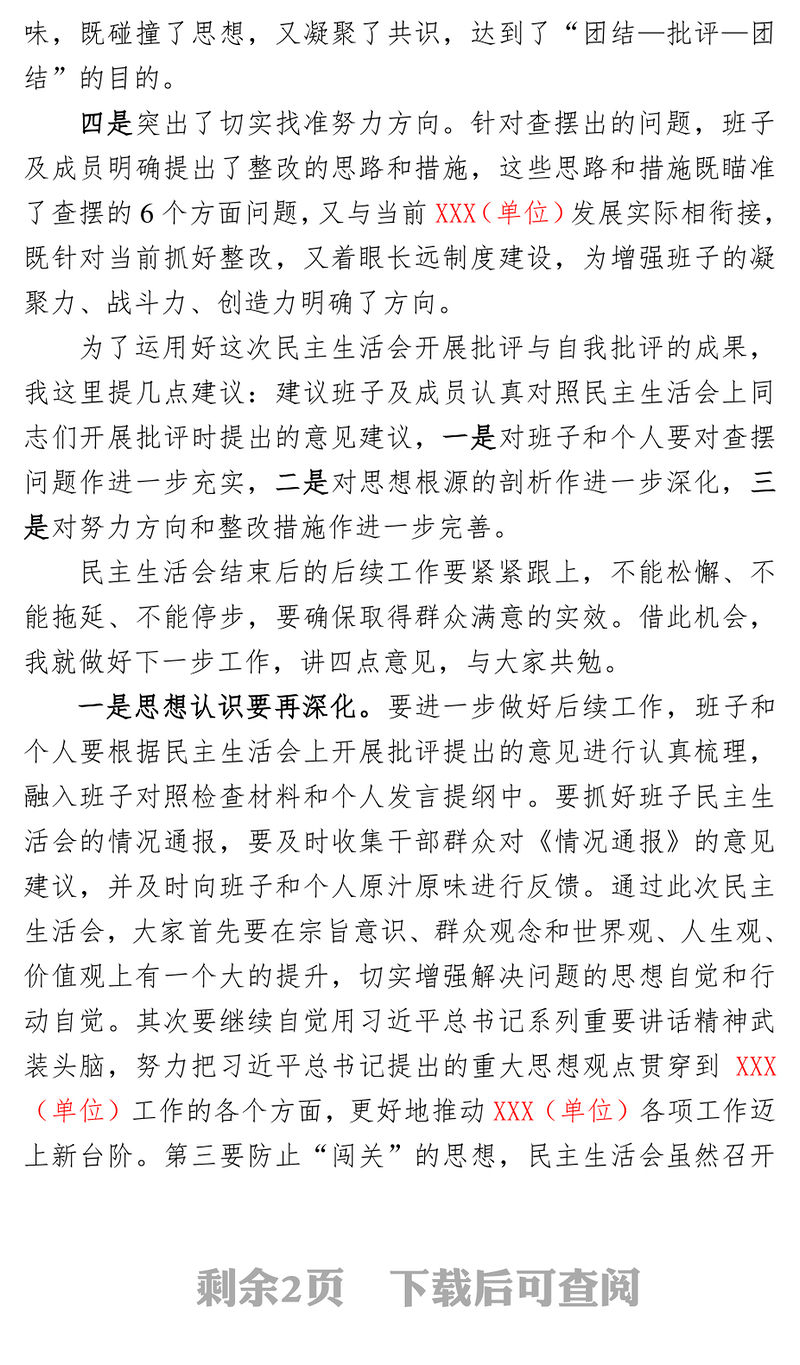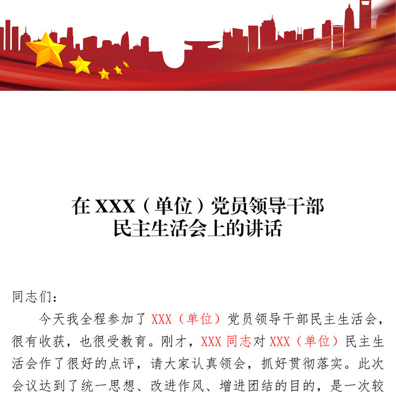 縣領導在鄉鎮部門領導班子2017年度專題民主生活會上的講話 (通稿),在XXX(單位)黨員領導干部 民主生活會上的講話. Array