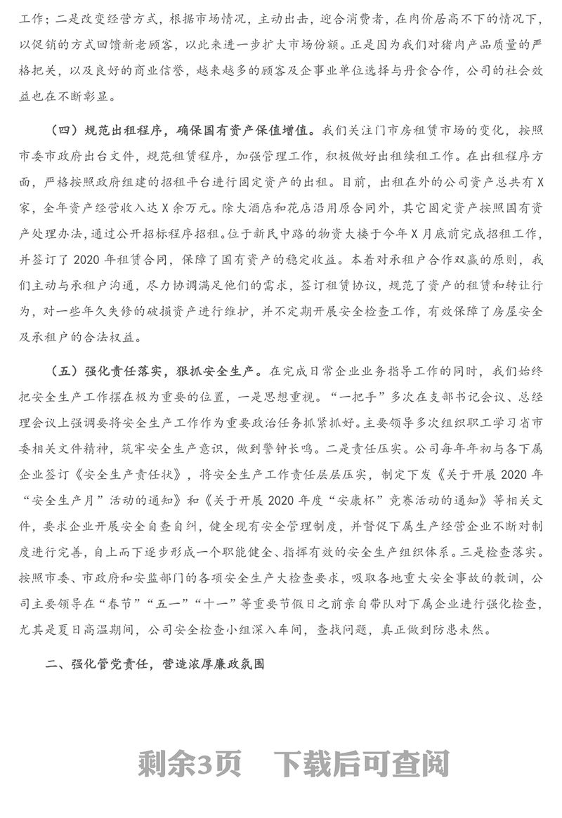 > 黨風(fēng)廉政 > X公司領(lǐng)導(dǎo)班子2020年度述責(zé)述廉述職述學(xué)述法報(bào)告.DOCX 【圖片、文字、動(dòng)畫均可編輯】