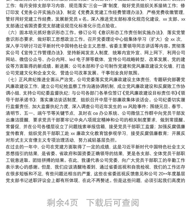 2021年國有企業黨課講稿國有企業黨課講稿2021年國有企業2022年黨建工作思路黨委書記黨課課件講稿2022國有企業改革三年行動工作總結2021團結就是力量黨委書記黨課講稿2022關于國有企業改革發展和黨的建設重要論述精神心得提綱部機關2022年落實全面從嚴治黨主體責任暨黨風廉政建設和反腐敗工作情況報告2021關于國有企業改革發展和黨的建設發言材料2022黨委書記黨風廉政建設述職報告2022黨組書記在黨風廉政建設匯報會上的講話2022學習關于國有企業改革發展和黨的建設心得體會2022全面從嚴治黨暨黨風廉政建設工作會議主持詞2023黨委書記 黨課講稿2023企業黨委書記新時代中國特色社會主義思想黨課講稿