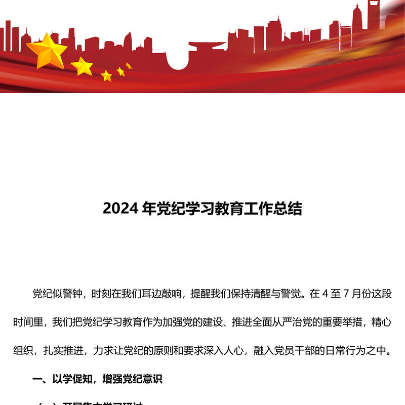 2024年黨紀(jì)學(xué)習(xí)教育工作總結(jié)PPT模板下載(講稿)