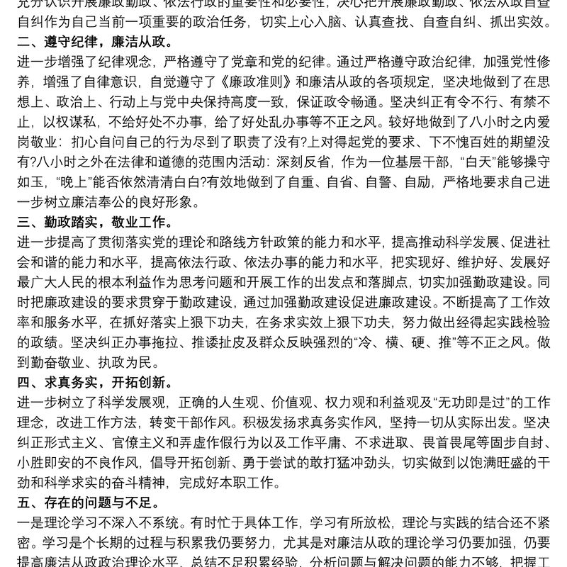 2021黨員個人廉潔自律自查自糾報告精選模板包含