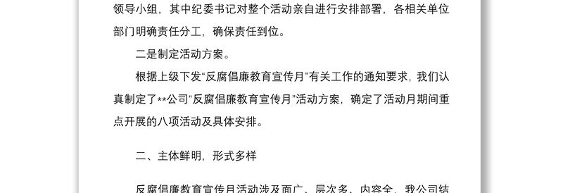 公司反腐倡廉教育宣傳月活動(dòng)工作總結(jié)文稿