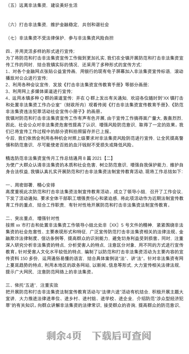精選防范非法集資宣傳月工作總結(jié)通用8篇2021 Array