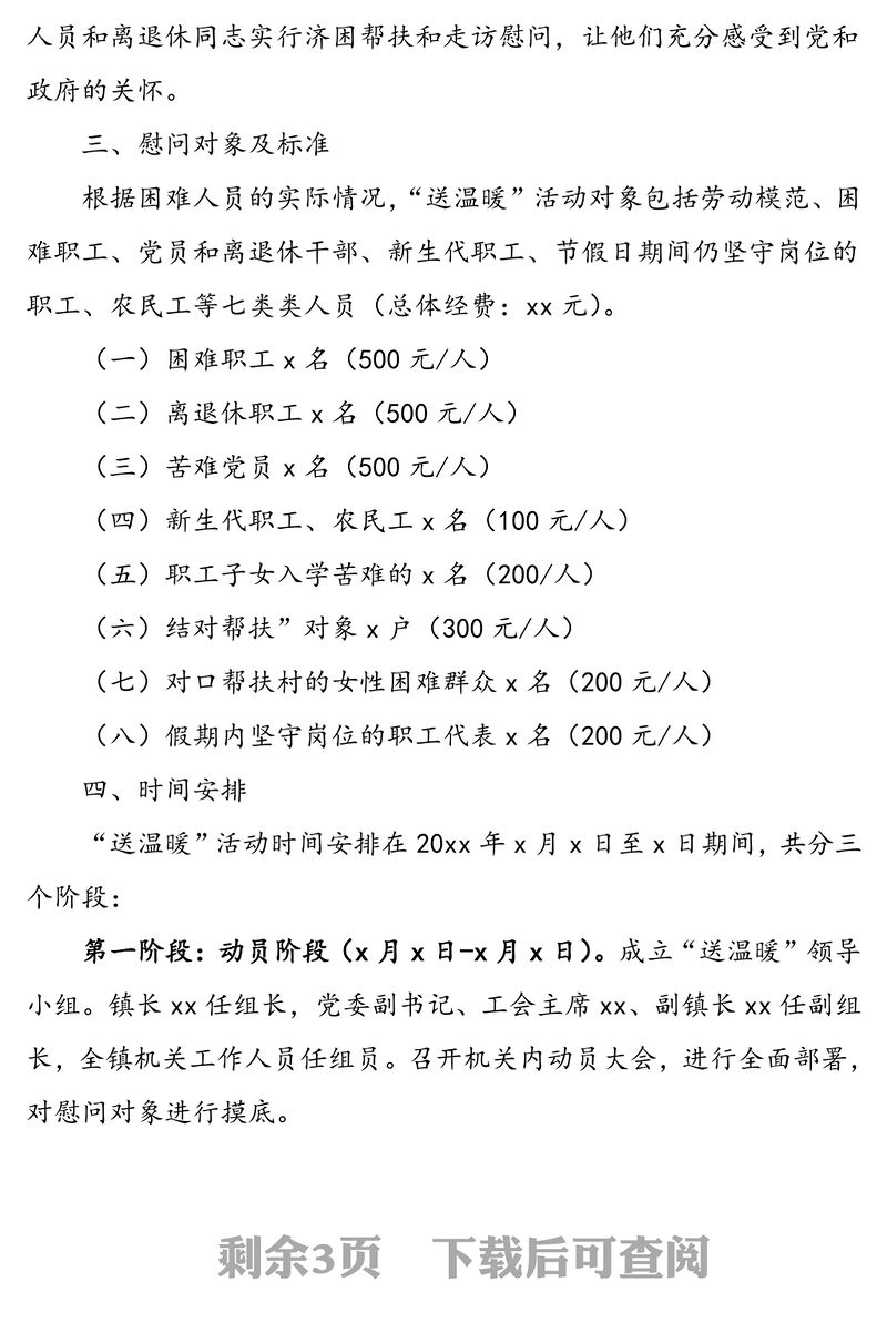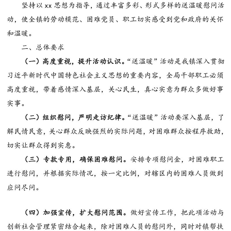 2篇工會送溫暖活動實施方案范文鄉鎮工會集團公司企業工會春節慰問職工活動方案,實施方案 Array