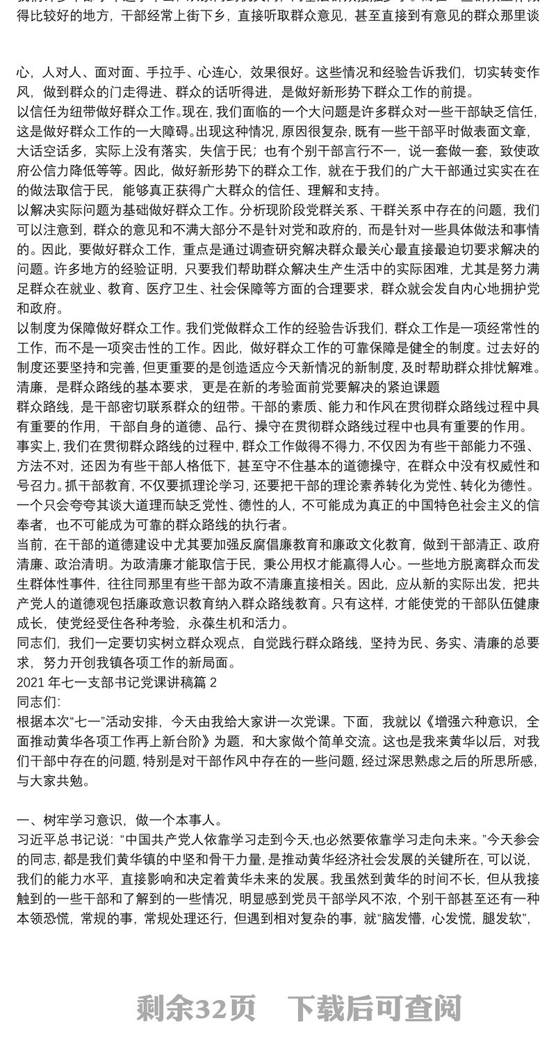 2021年七一支部書記黨課講稿范文(通用14篇) Array
