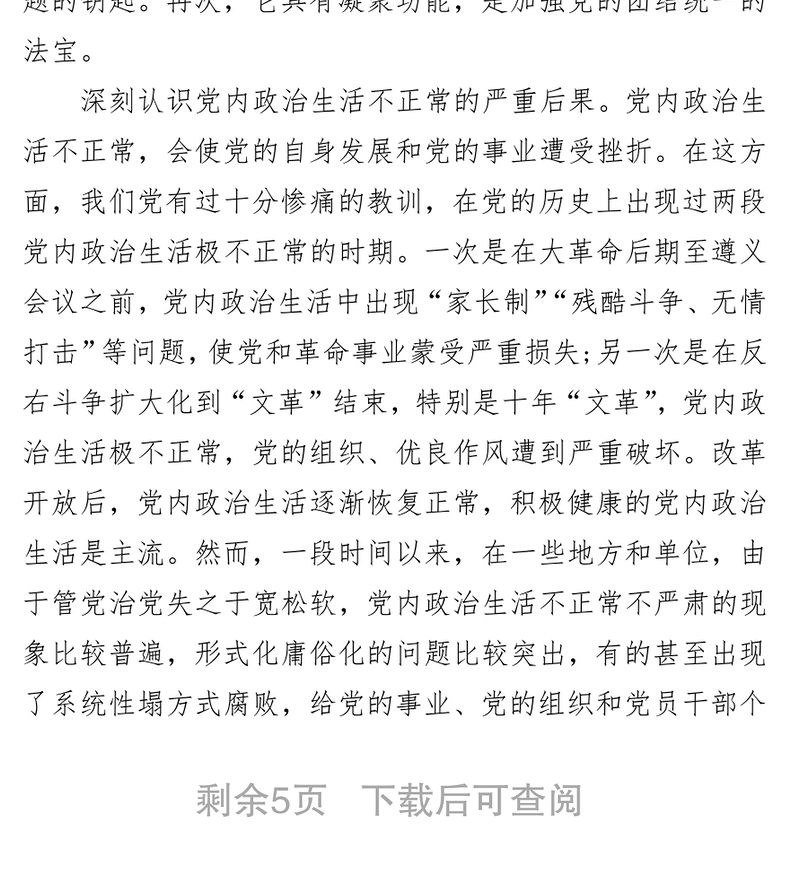 4份嚴肅黨內政治生活全面集中治理黨內政治生活庸俗化交易化問題研討發言材料稿供參考包含
