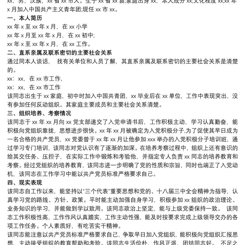 發(fā)展黨員政審,現(xiàn)實(shí)表現(xiàn)材料范文 黨員親屬政審現(xiàn)實(shí)表現(xiàn)三篇