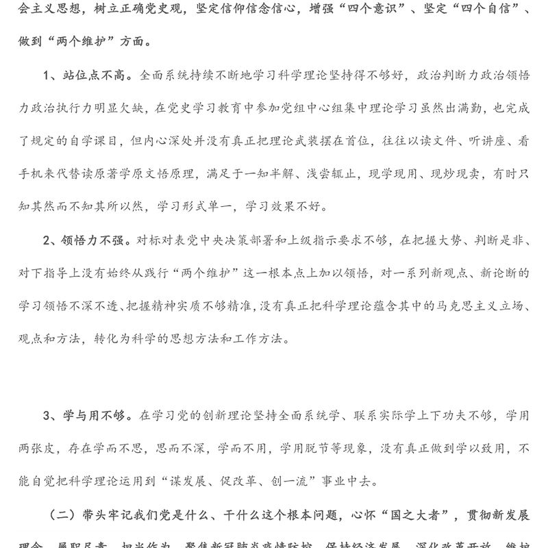 公司黨史學習教育五個帶頭專題民主生活會個人對照檢查材料包含