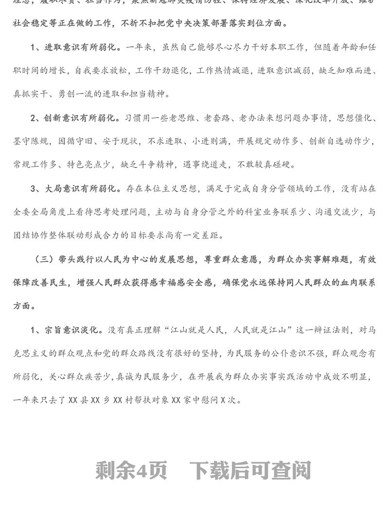 鄉鎮班子成員2021年黨史學習教育五個帶頭專題民主生活會個人對照檢查材料包含