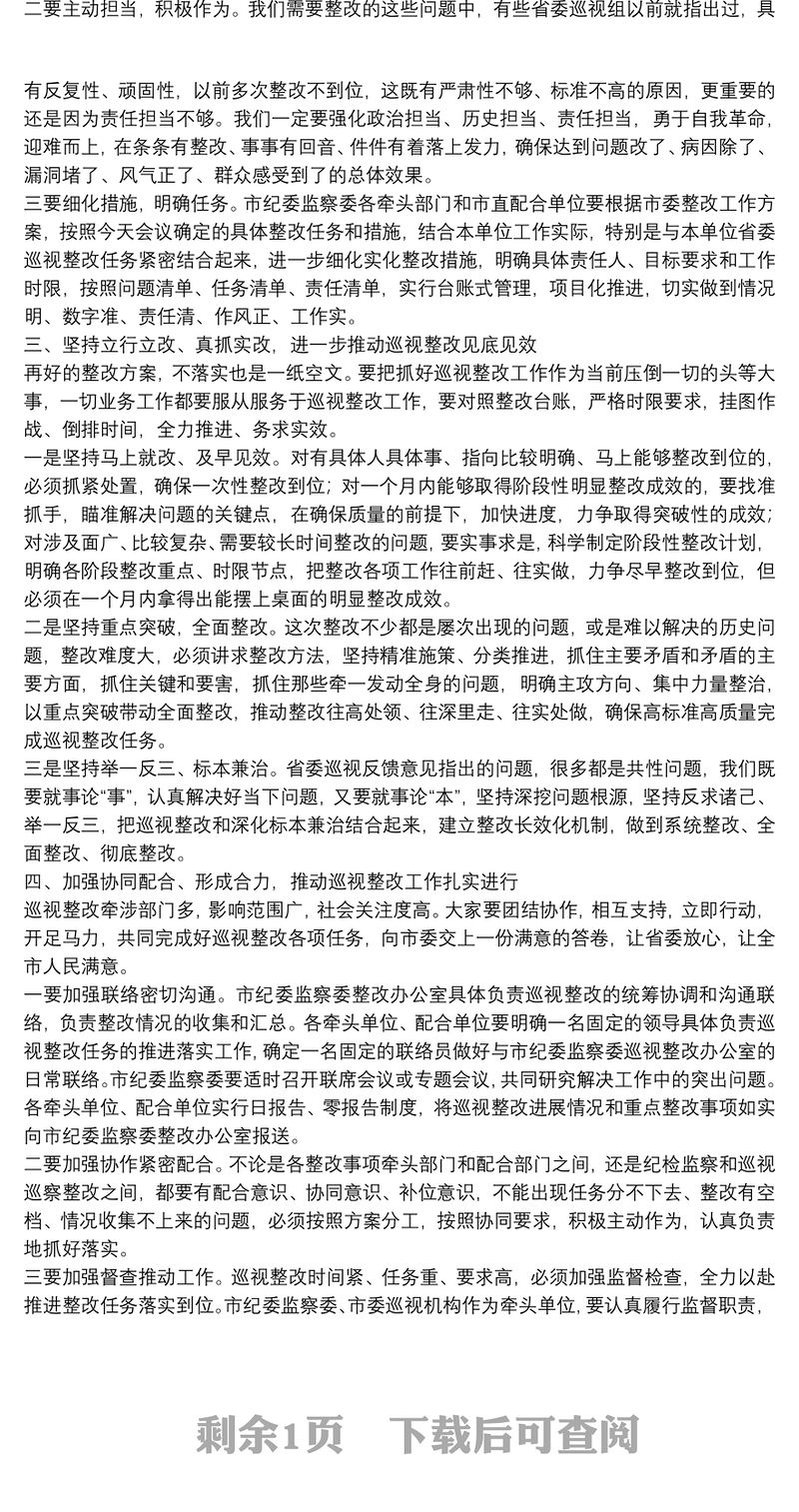 在全市推進(jìn)省委巡視整改工作動(dòng)員會(huì)議上的講話