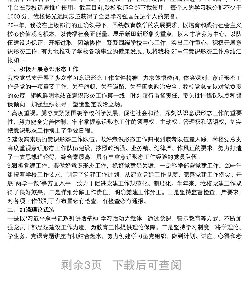 工圖網(wǎng)提供學校20xx年意識形態(tài)工作總結(jié)匯報 學校意識形態(tài)工作3篇供會員免費下載。更多精彩黨課PPT素材,盡在工圖網(wǎng)。