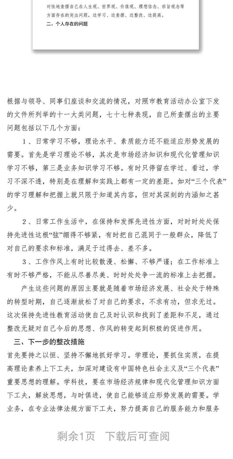 2021年保持共產黨員先進性活動黨員個人整改方案包含