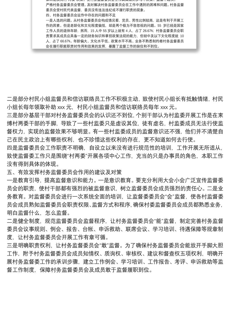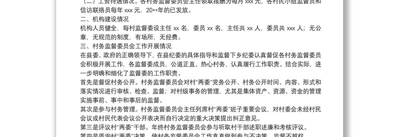 X鄉(xiāng)紀(jì)委關(guān)于村務(wù)監(jiān)督委員會(huì)工作開展情況的報(bào)告
