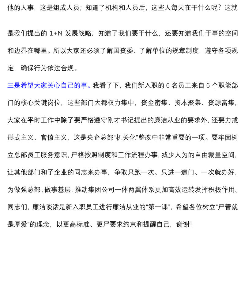 新入職人員廉政談話稿個人廉潔談話表態簡短三篇包含