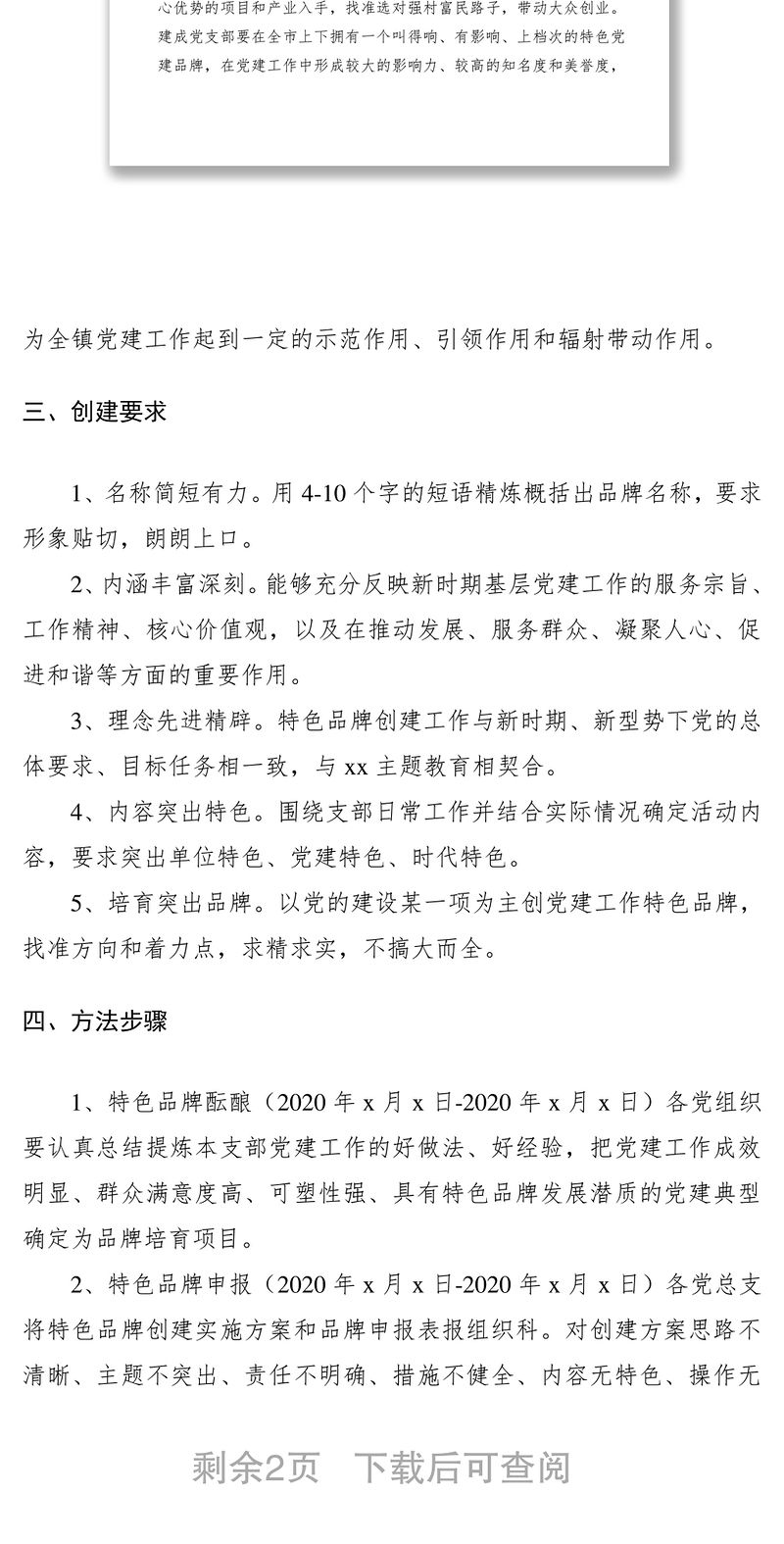 “一支部一特色”黨建品牌創建活動實施方案包含