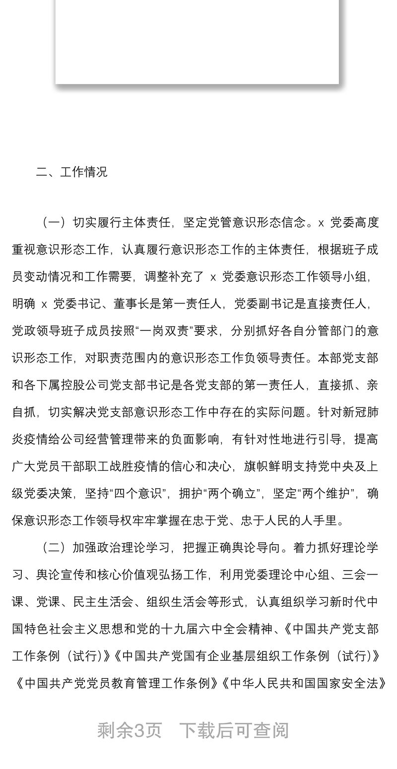 公司黨委2022年第一季度意識形態工作分析研判報告范文 Array