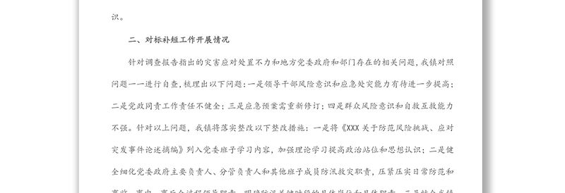 鎮關于X“7.20”特大暴雨災害調查報告學習貫徹落實情況的報告包含