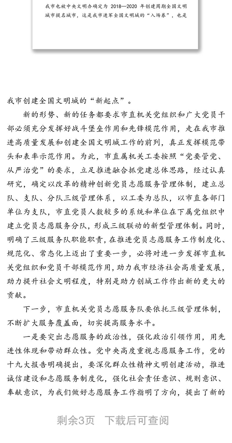 在機關黨員志愿服務隊成立暨助力高質量發展啟動儀式上的講話,機關黨員志愿服務隊 Array
