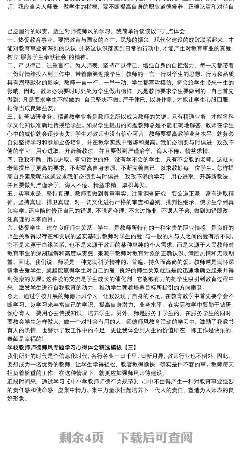 有關加強師風師德建設教師學習心得體會優秀5篇包含