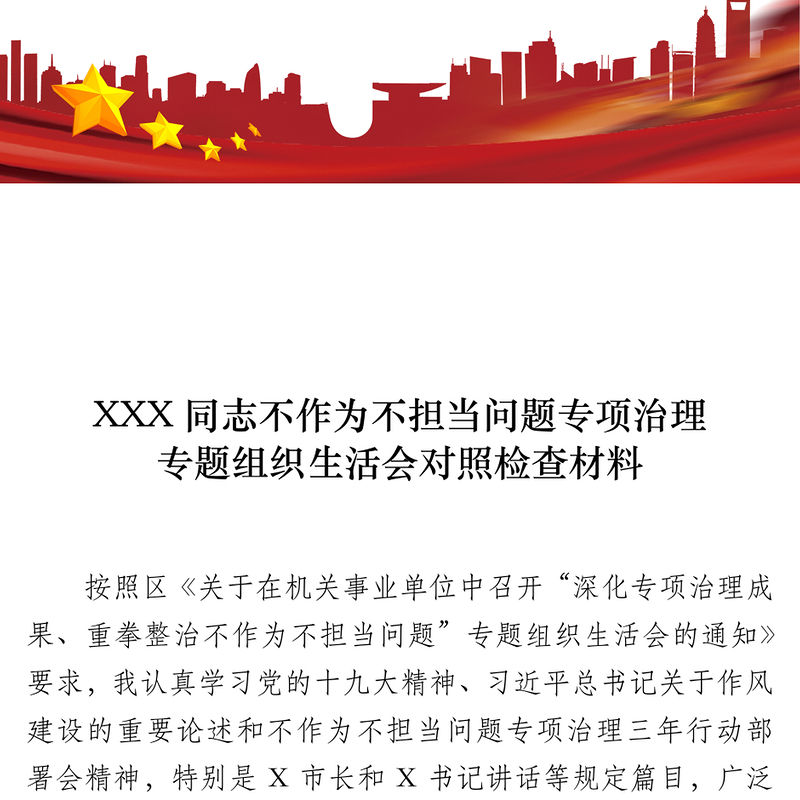 工圖網提供不作為不擔當專題組織生活會發言提綱供會員免費下載。更多精彩黨課PPT素材,盡在工圖網。