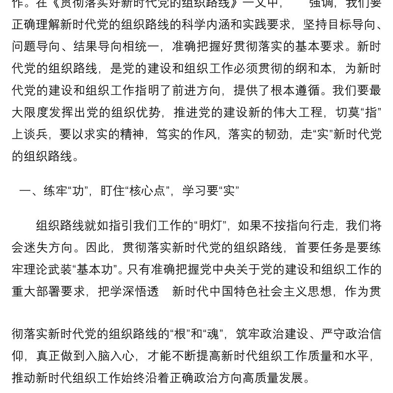 研討發言:深入貫徹落實新時代黨的組織路線 不斷把黨建設得更加堅強有力包含