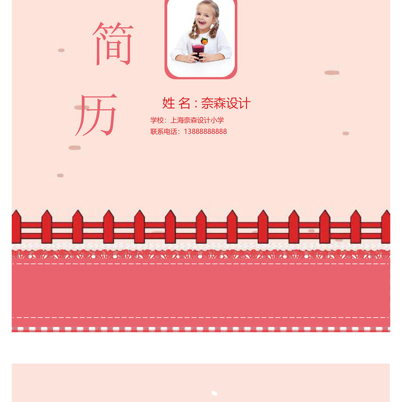 小升初簡歷幼升小學生簡歷兒童簡歷模版15包含