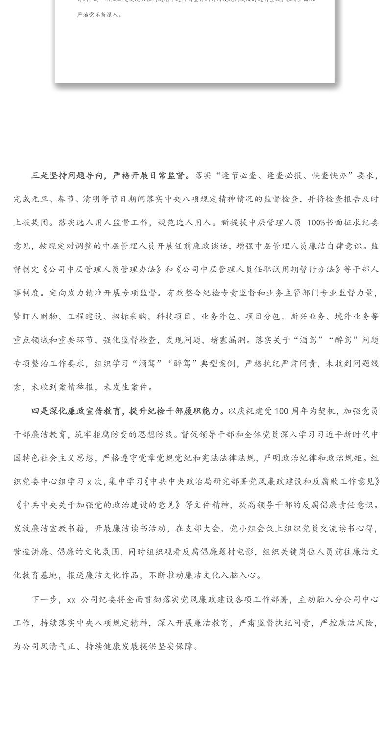 國(guó)有企業(yè)紀(jì)委2021年履行監(jiān)督責(zé)任工作情況報(bào)告