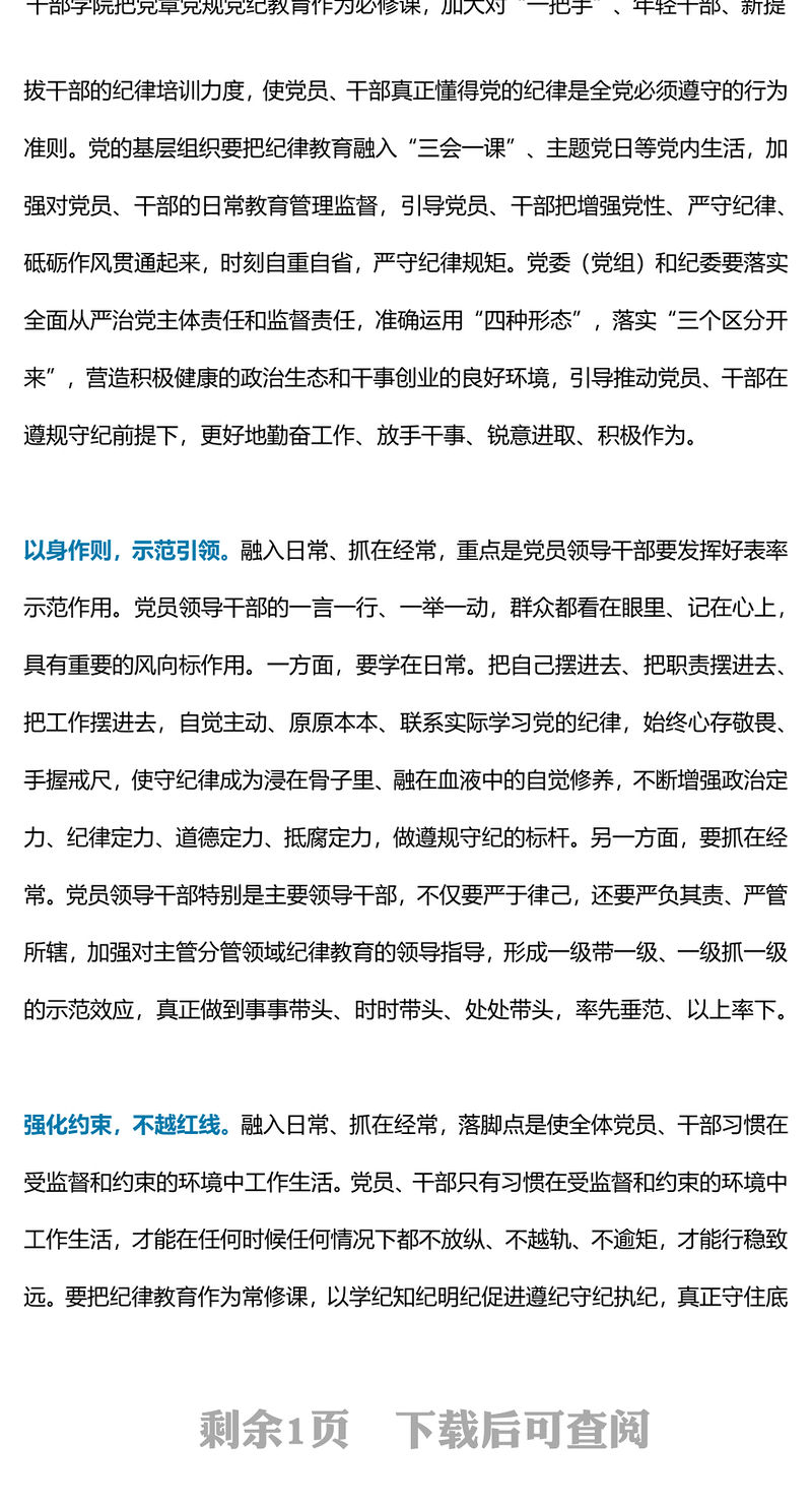 把紀(jì)律教育融入日常抓在經(jīng)常PPT精美黨政風(fēng)黨紀(jì)學(xué)習(xí)教育微黨課(講稿) Array