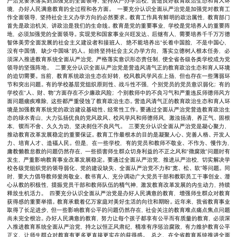 【教育】2019年3月8日在2019年全省教育系統全面從嚴治黨工作視頻會議上的講話