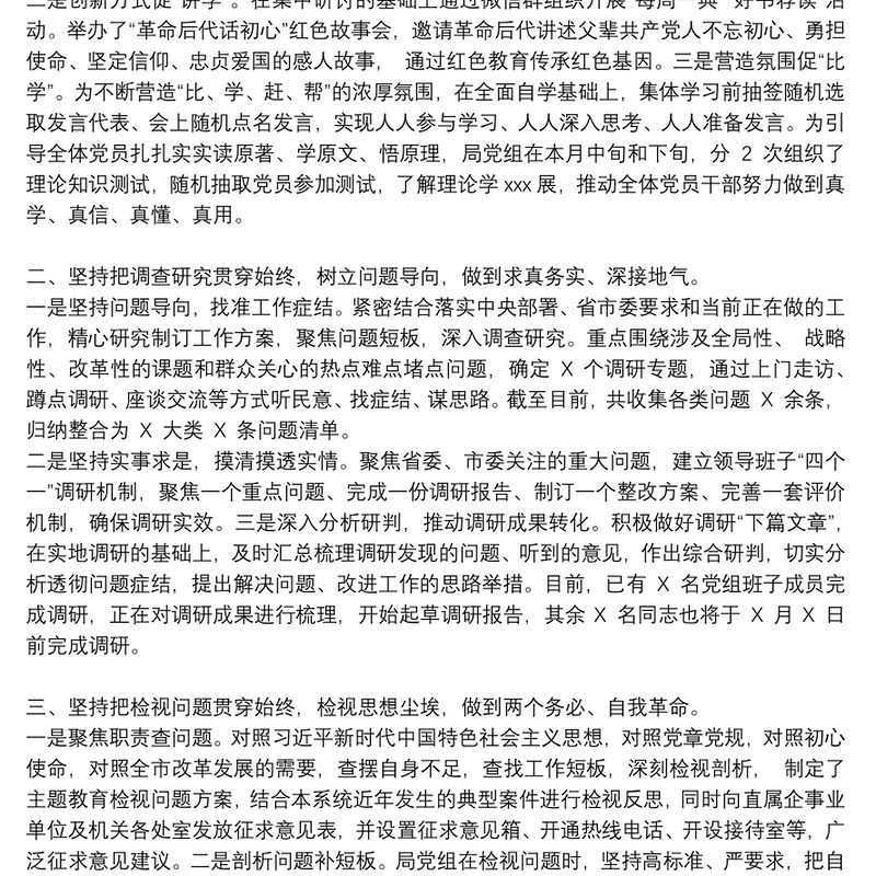 不忘初心牢記使命主題教育開展情況階段總結主題教育材料包含