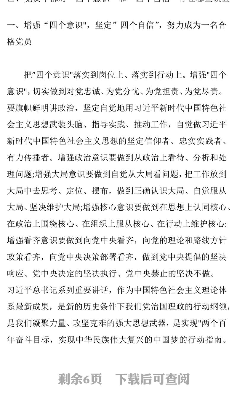 工圖網提供四個意識和四個自信黨課Word文檔模板供會員免費下載。更多精彩黨課PPT素材,盡在工圖網。